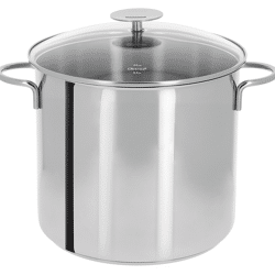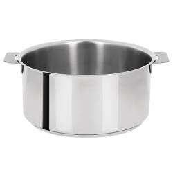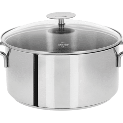 Faitout en inox brossé avec anses fixes polies et couvercle en verre bombé