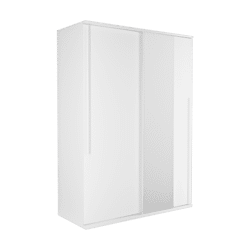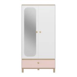 Armoire 2 portes effet bois chêne clair avec grand miroir blanc