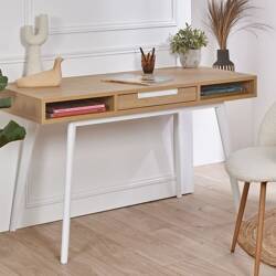 Bureau en bois 1 tiroir VINTAGE - Blanc/Chêne