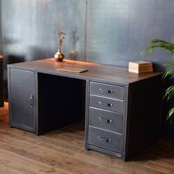 Bureau industriel avec tiroirs en chêne et acier - DÉLOS