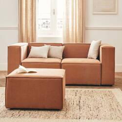 Canapé modulable d'angle 3 places avec pouf ARIA | Caramel - Kipli