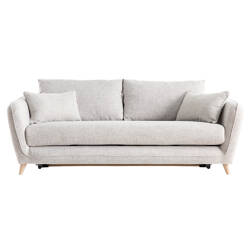 Canapé scandinave 3 places en tissu beige et bois clair CREEP