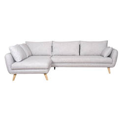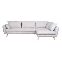 Canapé d'angle droit scandinave 5 places en tissu gris clair chiné et bois clair CREEP