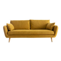 Canapé scandinave 3 places en tissu jaune cumin et bois clair CREEP
