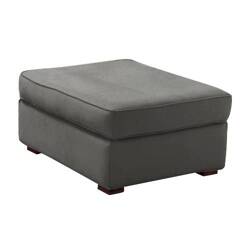 Pouf repose-pieds en tissu gris clair et bois clair PAPEL