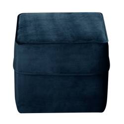 Pouf rond en tissu velours côtelé bleu grisé D40 cm LOUIS