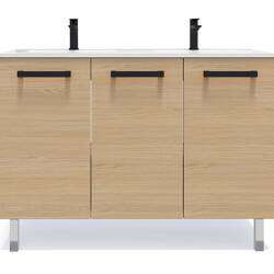Meuble salle de bain double vasque 120cm 3 portes Chêne