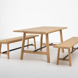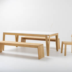 Table MéliMélo résine et 2 bancs PAP en chêne pour 6 personnes