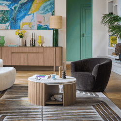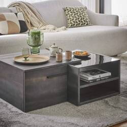 Table basse Cannela grège avec rangements intégrés, collection Addict