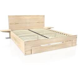 Lit 140x190 Happy 2 places bois avec tiroir et chevets amovibles