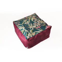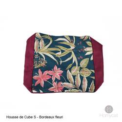 Cube Pouf Émeraude fleuri bordeaux - Couchage pouf chat design