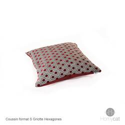 Coussin S 45x45 cm Griotte Hexagones pour Panier chat ou Déco