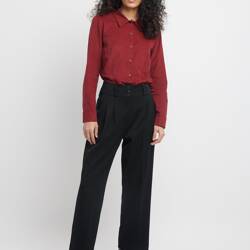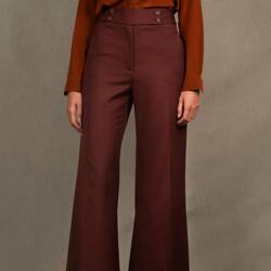 Pantalon Tailleur Femme Large en Laine Lie de Vin - Certitude