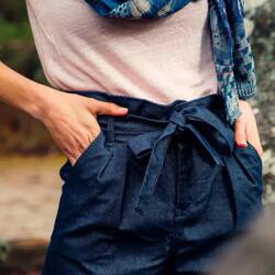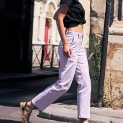 Chino femme droit ajusté taille haute en jean 100% lin français