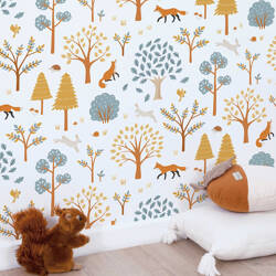 Papier peint panoramique enfant danse des feuilles beige 150x250cm-mad