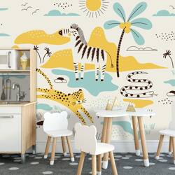 Papier peint panoramique enfant cirque de la jungle couleurs 170x250cm
