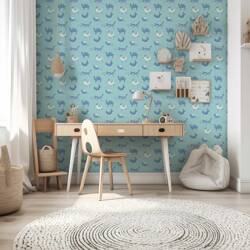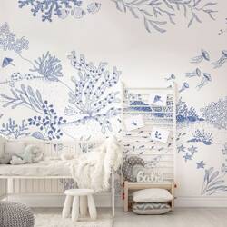 Papier peint panoramique enfant jardin sous-marin bleu 450x250cm-made