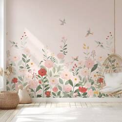 Papier peint panoramique fleurs et oiseaux, 2m x 3m
