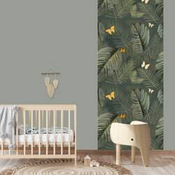 Lé de papier peint jungle tropicale – Feuillages et papillons