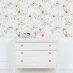 papier peint enfant fleurs et feuilles en papier blanc 50 cm x 10 m