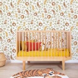 papier peint enfant motif jungle animaux, papier blanc 50 cm x 10 m