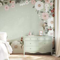 Papier peint panoramique fleurs vert sauge 4m x 3m