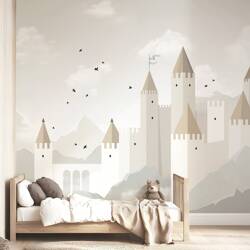 Papier peint panoramique château féerique gris/beige 4m x 2,48m