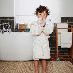 Peignoir enfant éponge et finition velours blanc