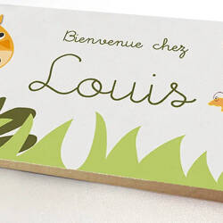 Plaque de porte chambre bébé – Thème savane (lion, girafe et perroquet)
