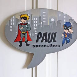 Plaque prénom personnalisée Thème Super‑héros – Cadeau original enfant