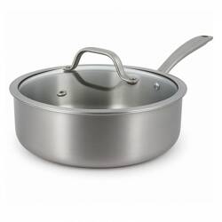 Plat sautoir en inox à 2 anses avec couvercle en verre