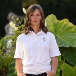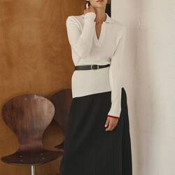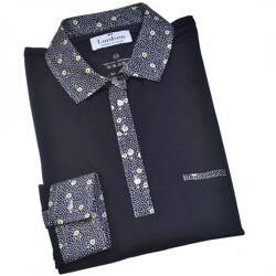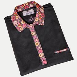 POLO FEMME BUMP NOIR COL FLEURS ROUGE ET OR