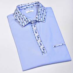 POLO FEMME BUMP BLEU CIEL COL FLEURS