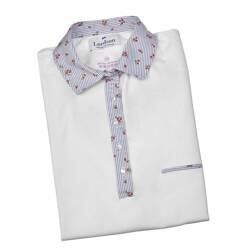 POLO FEMME BUMP BLANC COL ROUGE À FLEURS