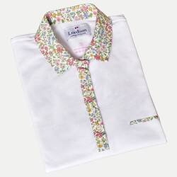POLO FEMME BUMP BLANC COL FLEURS PASTEL