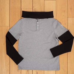 Polo Homme Gris Chiné - Col & Manches longues Noir