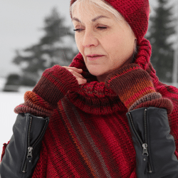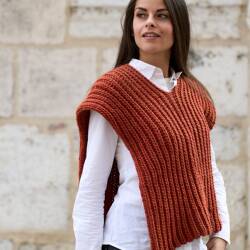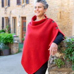Poncho en pure laine mérinos pour femme - Rouge chiné - Fabriqué en France