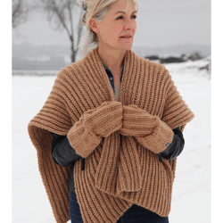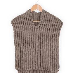 Poncho en pure laine mérinos pour femme – Gris clair chiné - Fabriqué en France