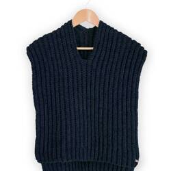 Poncho en pure laine mérinos femme - Marine chiné - Fabriqué en France