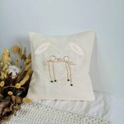 Coussin d'alliances personnalisé en lin brodé main - Souvenir de m