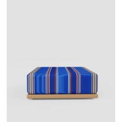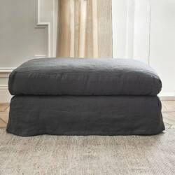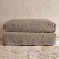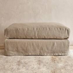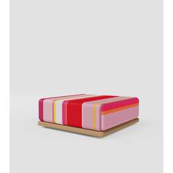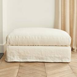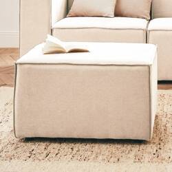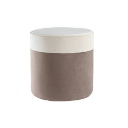 Pouf design bicolore en tissu velours blanc crème et taupe D40 cm DAISY