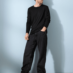 Pull col rond 100% Laine Mérinos - Noir - Homme