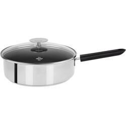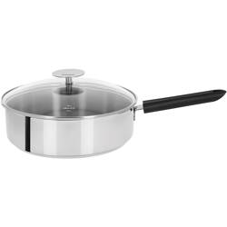 Wok en inox Ø28 cm, 2 anses fixes, avec couvercle en verre