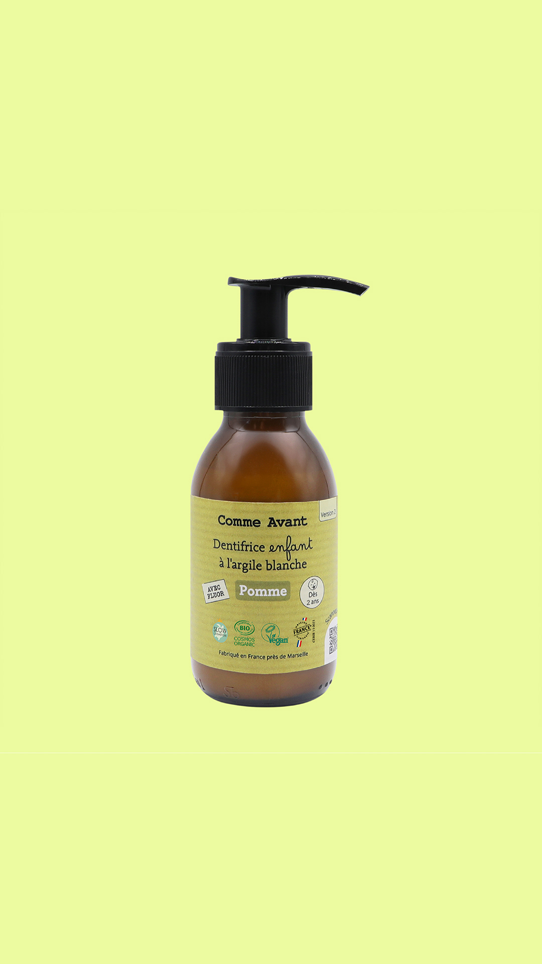 Dentifrice Enfant Bio Pomme en Pâte 90ml - Efficace & Naturel- Fluor & Argile Blanche