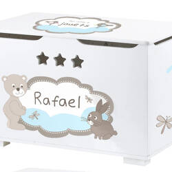 Habillage coffre à jouets personnalisé – Ourson, lapin et nuage