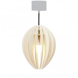 Lampe suspension bois et béton frêne teinté blanc cordon blanc