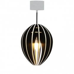 Lampe suspension bois et béton frêne teinté noir cordon blanc