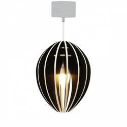 Lampe suspension bois et béton frêne teinté blanc cordon noir