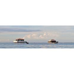 Tableau sur verre 65x145 cm - Tableau Pinasse cabanes - Impression décorative à la finition brillante - Fabriqué en France - Ceanothe