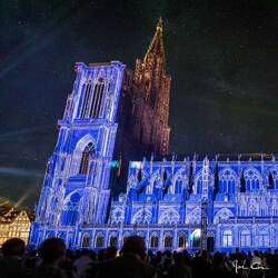 Tableau sur toile 45x45 cm - Tableau ballet d'ombres cathédrale de Strasbourg - Impression sur toile murale décorative avec châssis en Bois - Fabriqué